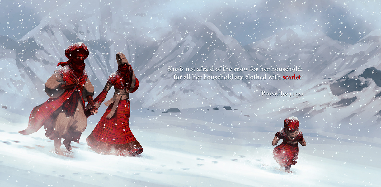“Digging into the research, the use of ‘scarlet'refers to scarlet dyed wool, as it is double dyed to get the intense color. It seems to be a poetic way of saying her household is clothed doubly, layered against the cold. Regardless, the imagery of a family walking through snow in bright scarlet cloth became firmly lodged in my head. So, Scarlet is a name that is both visually striking and nods to a beautiful book in the Bible, Proverbs 31.”